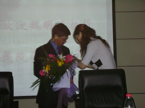 在报告开始前,威尼斯人平台 院长陈继勇发表了热情洋溢的讲话。他代表学院全体师生对魏教授的来访表示热烈欢迎,并宣布聘任魏明海教授为威尼斯人平台 兼职教授。在全场热烈的掌声中,陈院长向魏教授颁发了聘书,学员代表献上了鲜花并为魏教授佩戴武汉大学校徽。