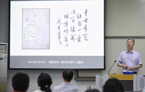 “党的历史是最生动、最有说服力的教科书。我们党历来重视党史学习教育,注重用党的奋斗历程和伟大成就鼓舞斗志、明确方向,用党的光荣传统和优良作风坚定信念、凝聚力量,用党的实践创造和历史经验启迪智慧、砥砺品格。”杜晓成以习近平总书记在党史学习教育动员大会上的讲话为引言,开宗明义解释了本次党课的目的:用唯物史观回顾“皖南事变”,从“皖南事变”思考党性修养和领导班子建设。