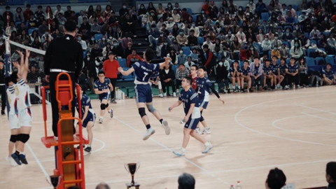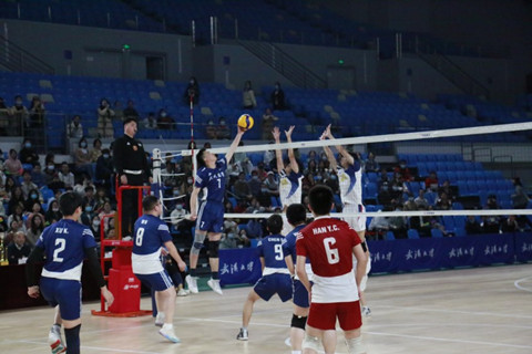 下午六点三十分,经管男排与电信队强强对决。面对四连冠得主电信队,经管男排始终保持昂扬的斗志,不放弃任何一个得分的机会,顽强拼搏。虽然遗憾落败,但是经管男排超越了自己,赢得了十年来的最好成绩——2022年“火炬杯”男子组亚军。