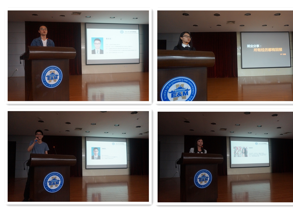 4月22日晚,研究生“朋辈指导”就业经验分享会在教工之家举行。签约中国建设银行总行经办岗的曹誉波是一名产业经济学博士研究生毕业生,曾担任海通证券研究所宏观债券组宏观分析师实习生和中证信用增进股份有限公司战略发展研究部研究助理实习生。他跟大家分享了他的求职准备工作,首先要做好面试准备,如简历要根据不同的岗位而做相应的修改调整,简历照片、面试着装和身体状况都要保持最佳状态。笔试准备和路途经费准备都必不可少,要从各个方面努力展现出自己最好的一面。张晓东也从简历准备、面试技巧等方面入手,给大家讲述他的经验。他首先建议大家如果研究生毕业后的规划是找工作,那么要尽快完成论文的撰写和发表,之后才能全副身心投入到实习和找工作中去。另外,如果是找券商类的工作,一定要实习,实习是非常重要的。其次,对于简历投递,可以做个excel表统计自己简历投递情况,方便了解简历投递进程。同时关于网申的资料,要随时用word保存,以便后面再次使用。关于面试技巧,他谈到可以沉默,但关键时刻能主导场面,成为leader。