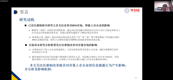 接着,陈海强教授对现有文献进行了整理。已有注册制相关研究大多关注改革对IPO市场的影响,而尚未有对存量市场的影响。因此,关注注册制改革是否对存量上市企业的信息披露行为产生影响成为该项研究的落脚点。